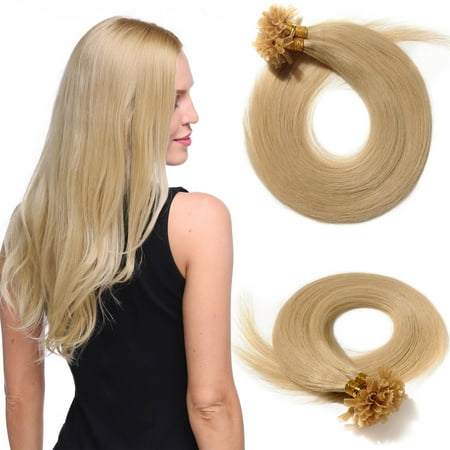 S Noilite Invisible Nail U Tip Glue Real Remy Human Hair Extensions Real Soft Hair Extensions 1 Piece 100 Strands Blond Bleach Blonde 16 50g