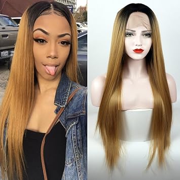 Glueless Lace Front Wigs Ombre Blonde Wig For Black Women Long Straight Hair Half Hand Tied