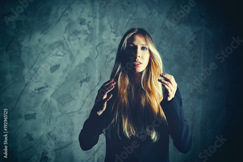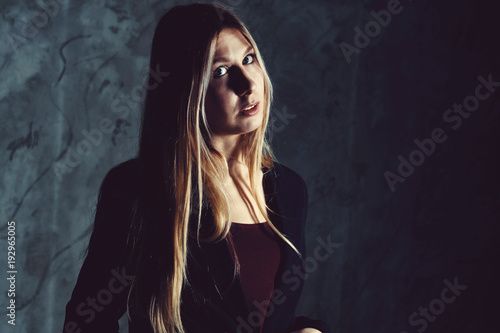 Attractive Pretty Young Model Posing Against A Dark Studio