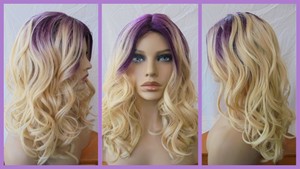 Details About Free Shipping Classic Cap Quality Synthetic Hair Blonde Ombre Purple Roots
