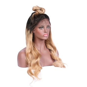 Honey Blonde Lace Front Wig Glueless Full Lace Wigs Human Hair Ombre Wig Black Roots 1b 27 Body Wave Brazilian Virgin Hair